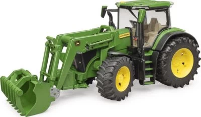 Eine zeitgemäße Landwirtschaft ist ohne moderne Traktoren gar nicht mehr vorstellbar. Da die Arbeit der Landwirt*innen nicht nur vielschichtig, sondern auch voller Herausforderungen ist, brauchen sie die richtige Technik. Traktoren der Serie 7R von John Deere verbinden ein geringes Gesamtgewicht mit hohen Leistungen. Dieser agile Traktor beschleunigt nicht nur Transporte, sondern bringt jeden Betrieb voran. Dieser wichtige Traktor ist neu bei BRUDER in der Themenwelt Landwirtschaft zu finden. Getreu dem BRUDER-Motto „Just like the real thing“ ist der Traktor mit vielen, realistischen Details ausgestattet. Die Motorhaube öffnet sich und zeigt den imposanten Motor. Türen sind zu öffnen und bieten den bworld-Figuren Platz (separat erhältlich) in einer modernen Kabine. BRUDER-typisch ist die ausgezeichnete Steuerbarkeit und der Fahrkomfort durch die eingebaute Pendelachse und die durch das Schiebedach einsetzbare Lenkverlängerung. Durch die höhenverstellbare Heckkupplung können alle Anhänger der Profiserie (separat erhältlich) benutzt und durch den vorhandenen Frontlader auch gleich beladen werden. Alle Anhänger aus dem landwirtschaftlichen Sortiment von BRUDER können an diesen Traktor montiert werden.
